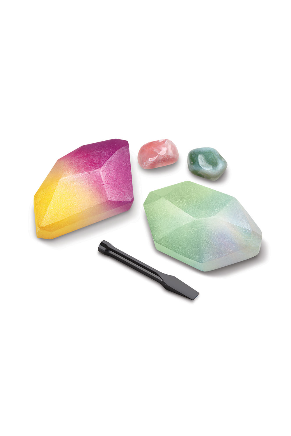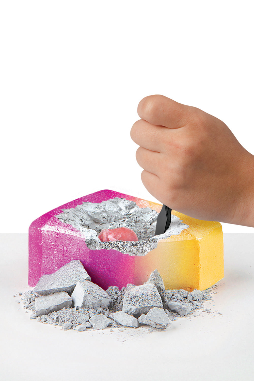 UNEARTH HIDDEN GEMS: Place the chalk exploration block on a large piece of plastic or newspaper and hack away at the surface to unveil brilliant crystals and rocks that dazzle! You can also moisten the top with a bit of water to make it easier to remove the chalk.