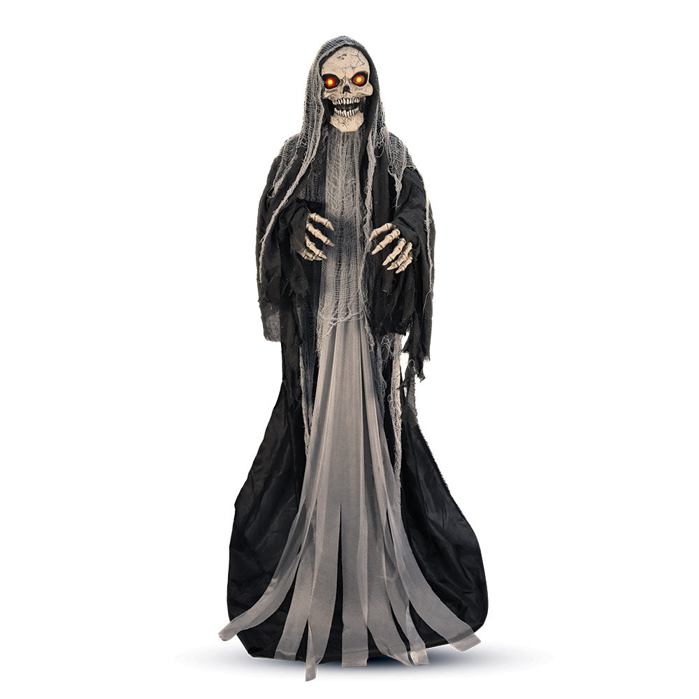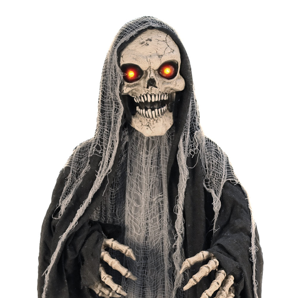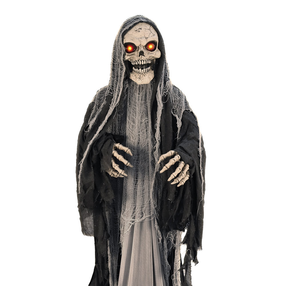 - Chilling Details: Features a skeleton face and hands, a black and grey cloak, and glowing eyes for an eerie effect.