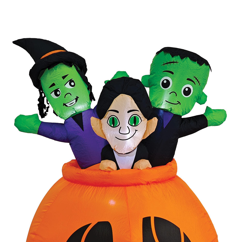 As the witching hour approaches, the Mad Toys Inflatable Spooky Cauldron springs to life in your yard. The cauldron’s vivid colours flicker ominously under the glow of built-in LED lights, casting a spellbinding yet eerie illumination. Inside the cauldron, three mischievous kids appear to be brewing up a bewitching concoction, their playful antics taking on a sinister edge as shadows dance around them. The scene creates an unsettling atmosphere, as if the cauldron has drawn them into a magical, otherworldly realm. Guests who wander near are captivated and chilled by the cauldron’s hauntingly vibrant glow, making it the focal point of your Halloween celebrations and ensuring a night of spooky enchantment.